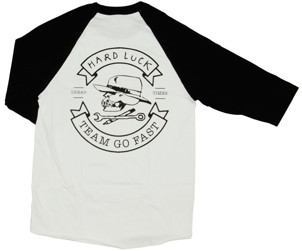 Hardluckの七分丈ラグランです。バックプリント有り。レターパック対応商品/レターパック指数:400(約1000までレターパックでお送り出来ます)