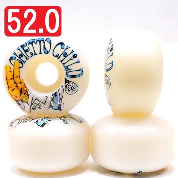 Ghetto ChildウィールのTorey Pudwillモデル、硬度:99a、ノーマルシェイプの52mm。
