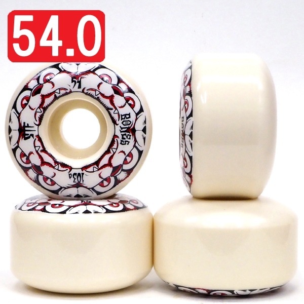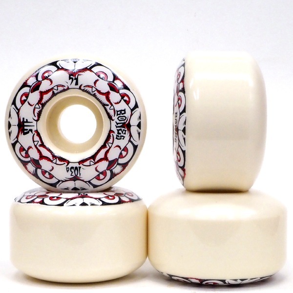 硬度103Aとやや硬めのため、ウィールを横滑りさせる技もしやすく、従来のウィールよりフラットスポットも出来にくいため、安心してより軽く、より長くスライド等を流せる丈夫なウィールです。